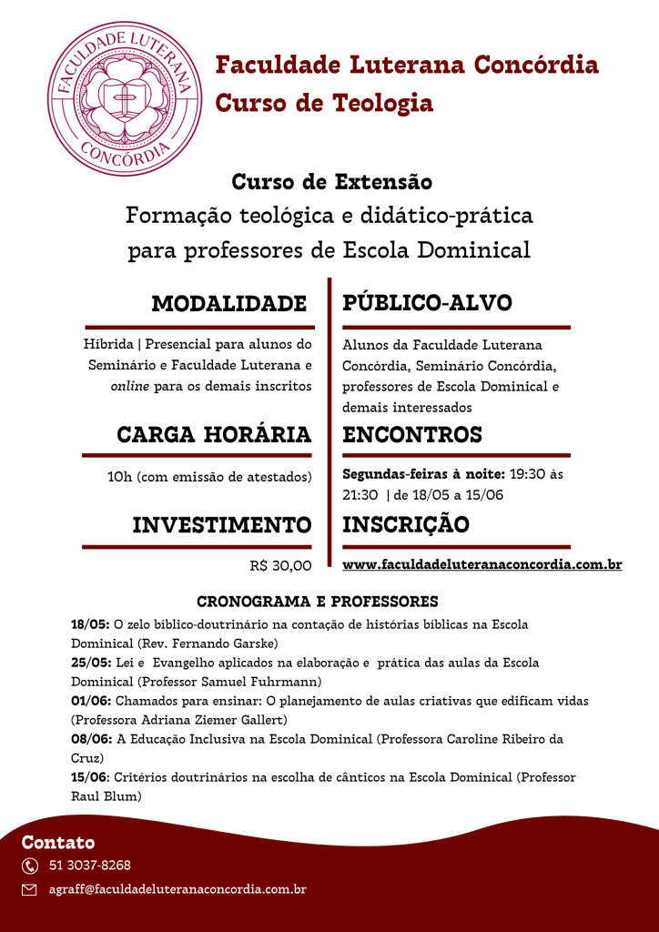 Venha participar da formação teológica e didático-prática para professores de Escola Dominical.